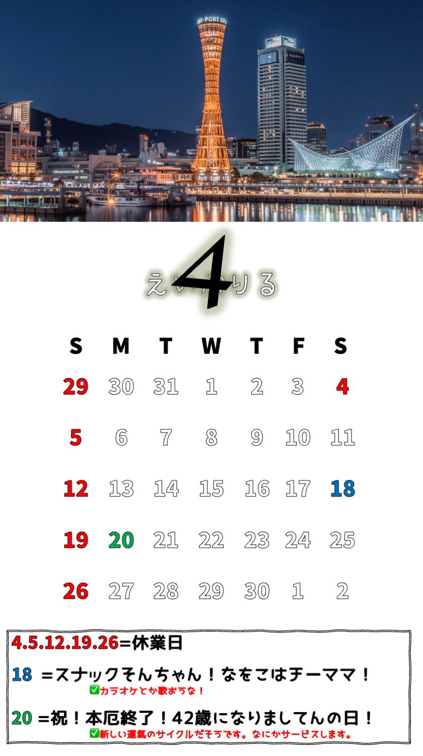 それでは今月のカレンダーです。ご確認のほどよろしくお願いいたします。